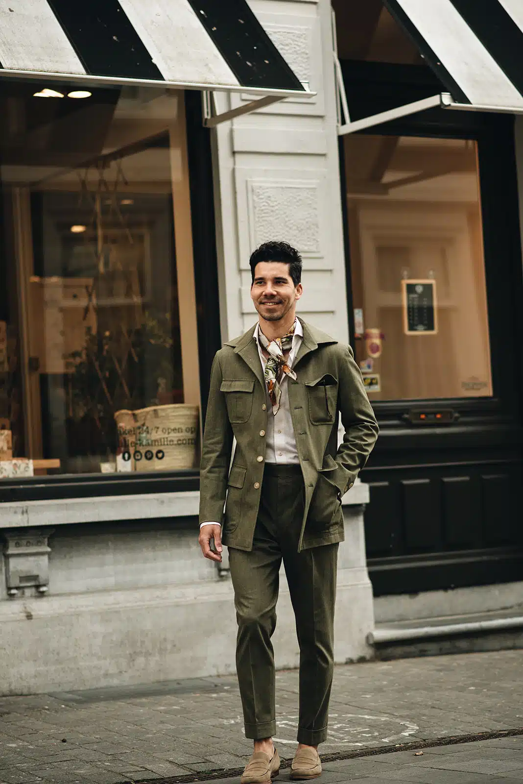 Het safari jacket is niet meer weg te denken uit het hedendaagse straatbeeld. Wij lopen graag een beetje voor op de trends en kiezen daarom vaak voor een safari jacket in een bijzondere stof. Denk bijvoorbeeld aan denim, dit is super sterk, comfortabel en past gemakkelijk bij andere items uit je garderobe. Een ander voordeel is dat je denim zowel in het voor- als najaar goed kunt dragen. Naast de denim mogelijkheid is een extra zomerse uitvoering ook uniek. Met een open weving, zoals een hopsack weving, is jouw jacket extra luchtig en ideaal te dragen als zomerjasje.