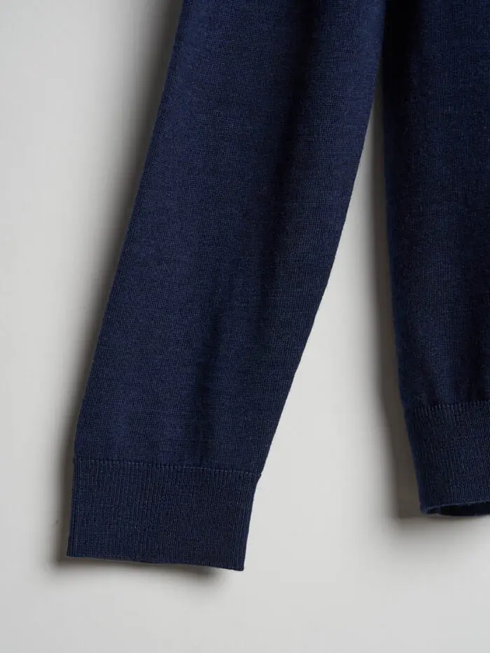 De 100% merino wolle crewneck is een trui waar je elk seizoen plezier van hebt: een echte Must have! Door gebruik te maken van 100% wol is de trui erg ademend, maar zorgt ook voor voldoende isolatie. In de combinatie is een Midnight Blue crewneck ideaal. Denk hierbij aan een lichter overhemd met een jeans voor een lichte casual look, of maak het wat meer smart casual met een pantalon.