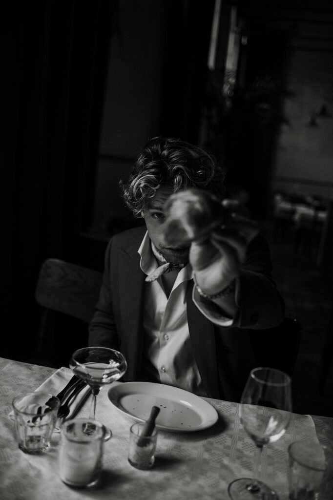 “Mannen kunnen pakken op twee manieren dragen. Enerzijds omdat het moet van hun baas terwijl ze achter een computerscherm onder een tl-buis zitten en anderzijds is het dress to impress. Van die eerste krijg ik de kriebels en die tweede vind ik echt gruwelijk. Festiviteiten waar ik ook maar een vinger krijg om te overdressen – zoals premières en bruiloften – grijp ik graag aan voor het dragen van een mooi maatpak. Ik ben dan ook heel blij met het pak wat ik nu draag van Michael & Giso.”