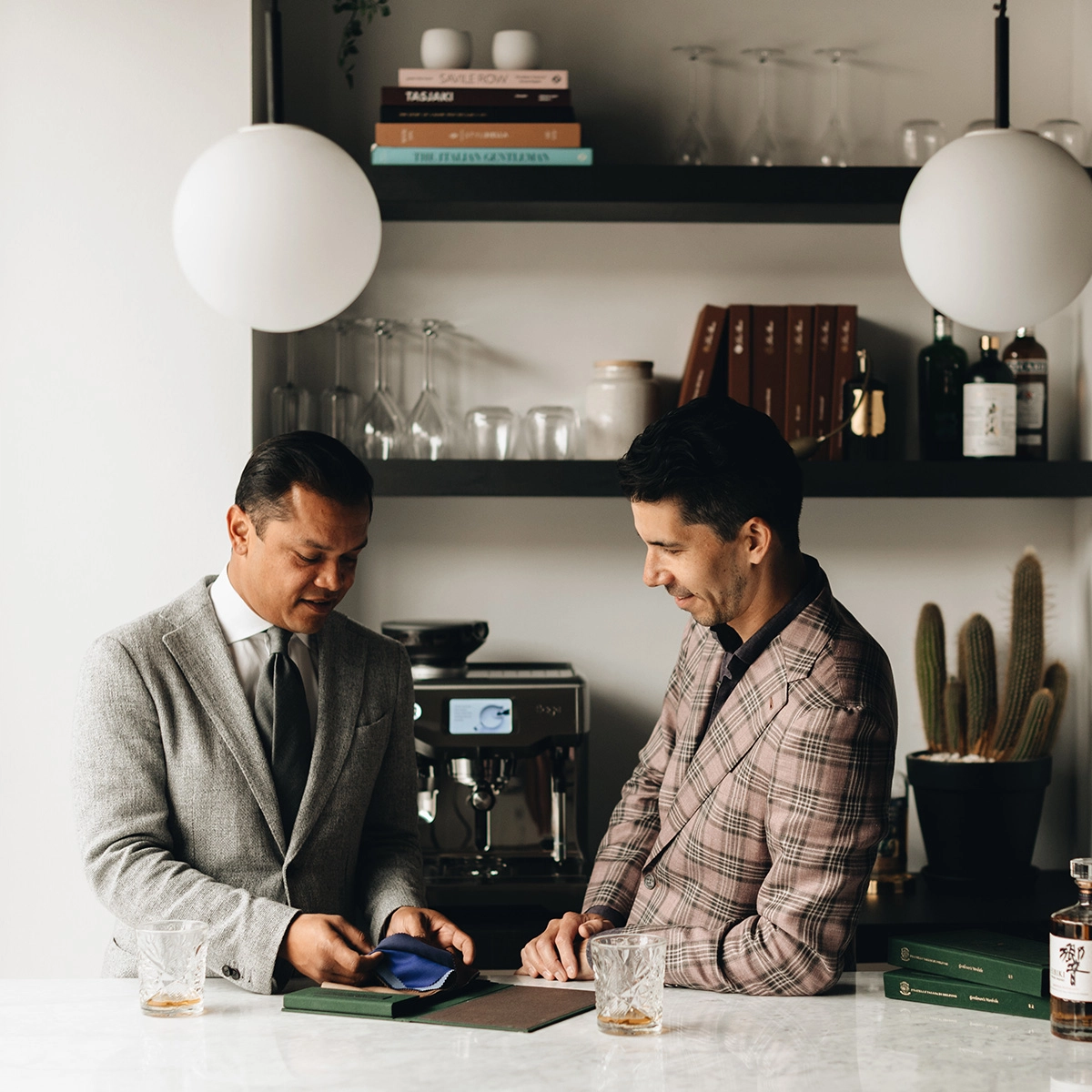 Michaël, Tycho, Alexander en Hoessein staan voor jou klaar om je te adviseren voor jouw trouwkostuum. Niets is zo persoonlijk en uniek dan een op maat gemaakte outfit waarin jij als persoon het uitgangspunt bent. Wij streven ernaar om een plek te creëren waar mannen in een ongedwongen sfeer hun persoonlijke stijl kunnen ontdekken en waardevolle connecties kunnen opdoen.